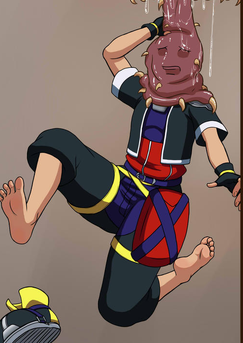 (Raven, having been almost entirely swallowed, can do nothing but kick her bare soles defiantly before she is completely consumed...)